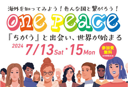 終了した事業ONE PEACE ー『ちがう』と出会い、世界が始まるー開催日:①7月13日(土)13:30-18:40 ②7月15日(月)9:15-17:00開催場所:海の家 きばらし -