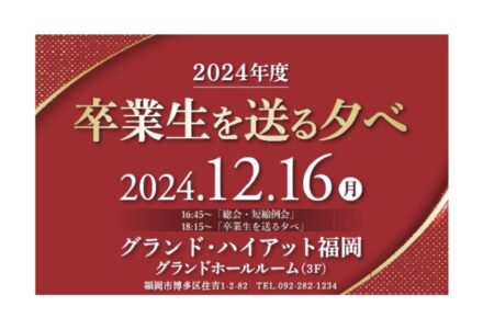これからの事業予定2024年度卒業生をおくる夕べ開催日:2024年12月16日(月)開催場所:グランドハイアット福岡 -