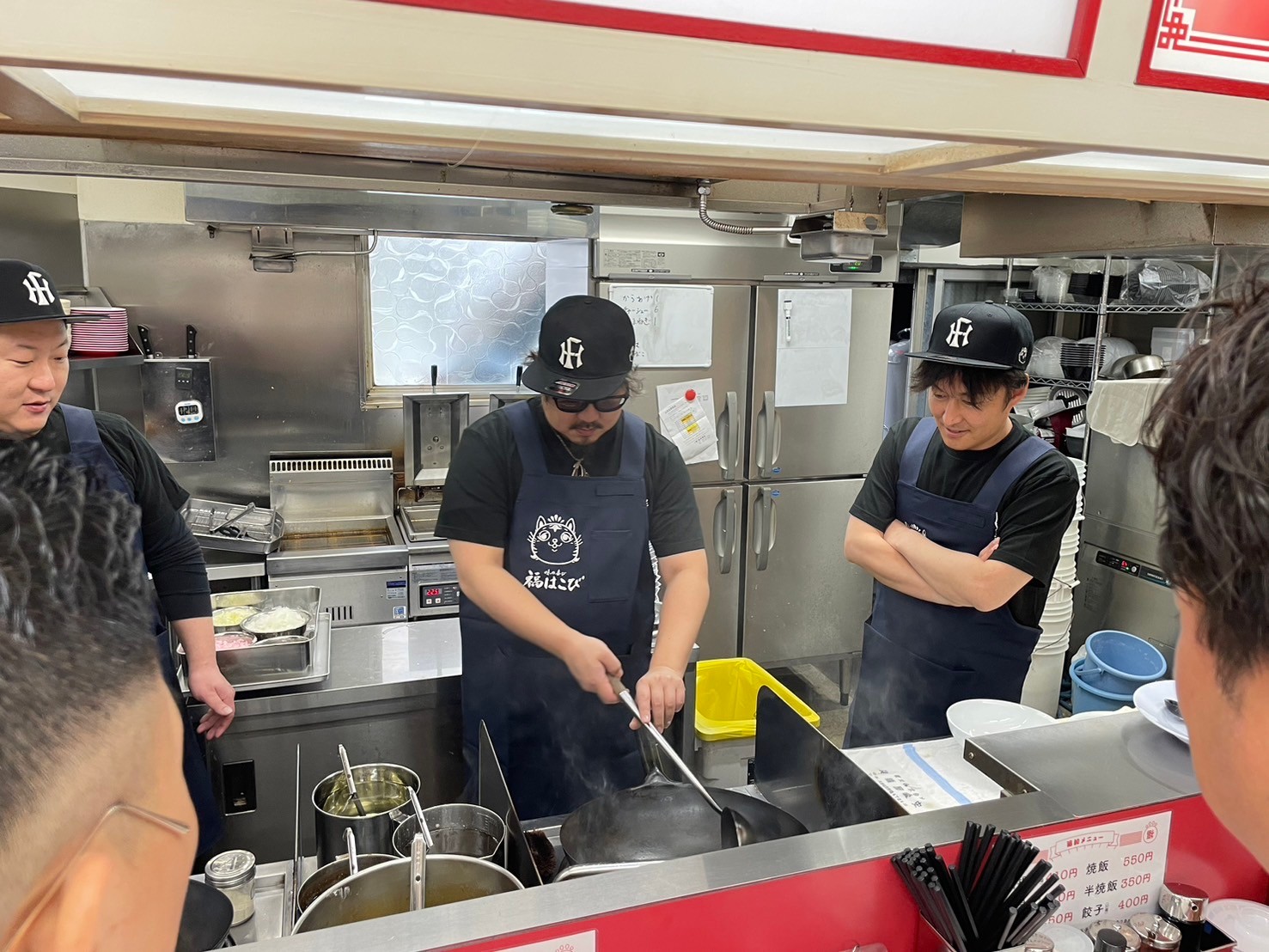 山口卒業生が美味しいラーメンを食べたい!と言う事で、まずは当委員会所属の山田委員が経営している店舗「福はこび」の厨房をおかりし、ラーメンづくりを体験させて頂きました!